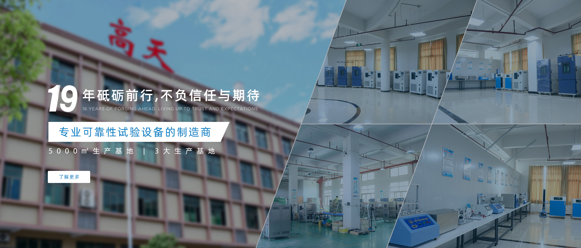 東莞市高天試驗設備有限公司是一家可靠性試驗設備的制造商,我們專注于可靠性試驗已有19余年,在此期間,我們竭盡所能,努力為客戶提供完善的實驗室規(guī)劃方案,匹配質優(yōu)價廉的試驗設備。高天擁有完整的研發(fā)團隊,其中有很多人都躋身試驗設備行業(yè)多年,能為顧客提供完善的技術方案,以幫助廣大客戶在確保其產(chǎn)品品質的前提下,有效降低經(jīng)營成本,提升經(jīng)營競爭優(yōu)勢。高天生產(chǎn)的設備種類眾多,同時擁有實用新型專利證書,銷售范圍覆蓋全國。公司自成立以來堅決以精美的外觀設計,認真務實的工作精神,良好周到的后續(xù)服務,贏得了客戶良好的口碑。我們將一如既往,堅持以“誠信經(jīng)營”為...
